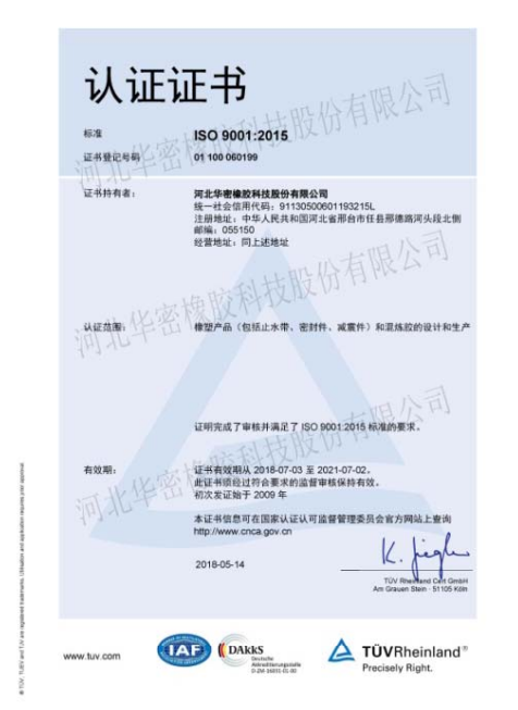 河北华密橡胶科技股份有限公司始建于1989年,是生产特种混炼胶、橡胶减震制品和橡胶密封件的专业厂家。 公司位于河北省邢台市任县经济开发区(京港澳高速公路东四公里处),交通便利。华密占地约 100,000 ㎡ 建筑面积达 60,000. 拥有员工近 500 . 华密工程技术中心被评定为省级“橡胶密封与减震工程技术中心”,且通过了德国莱茵的 ISO9001, ISO14001OHSAS18001IATF16949 以及国军标GJB9001C等体系认证。.